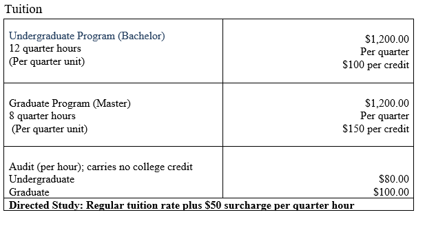 The school reserves the right to establish and change without notice the schedule of tuition and fees.  The school has established the following tuition and fees for the school year.